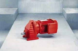 Мотор-редуктор Sew—Eurodrive RX серии R, у которого оси валов расположены на разных уровнях. Модель представлена с креплением на лапах в прочном чугунном или алюминиевом корпусе в зависимости от модели. Отбор мощности осуществляется с цельнолитого вала со шпоночным креплением ответной части. Так как соосно-цилиндрический мотор-редуктор Sew—Eurodrive RX серии R оснащен одной ступенью, применяются в оборудовании, где нет высоких требований к скорости. Отличается небольшим пределом передаточного числа от 1,3 до 8,65. Способен развивать вращающий момент от 36 до 830 Нм. Может комплектоваться моторами от 120 Вт до 45 кВт. Модель устойчива к работе в тяжелых условиях.